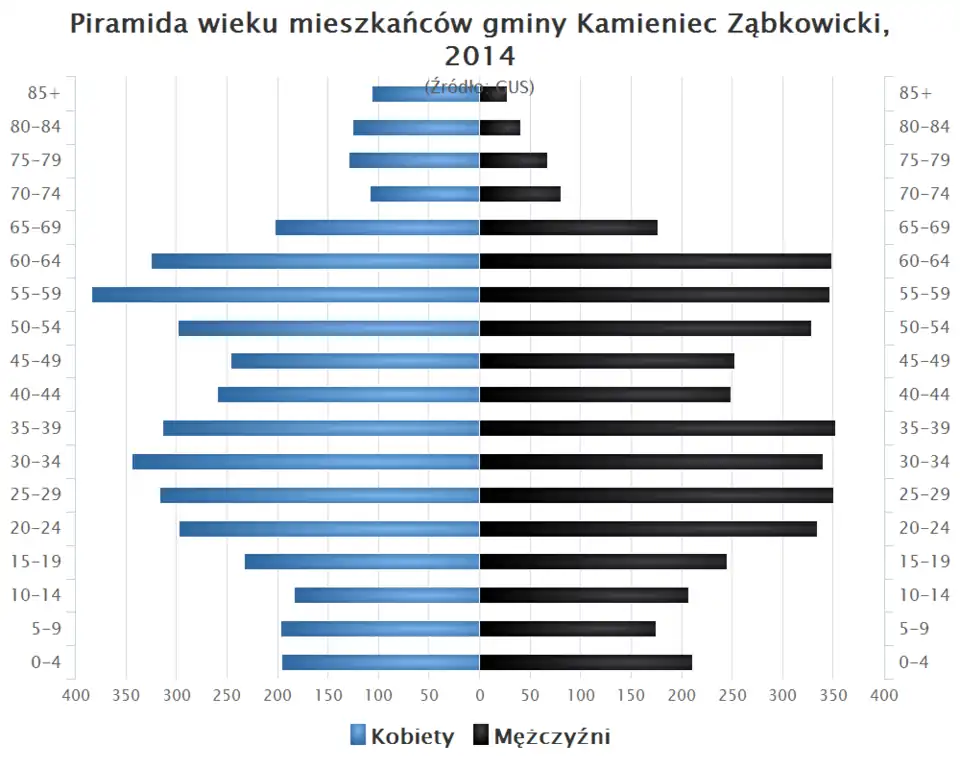 - Piramida wieku mieszkańców gminy Kamieniec Ząbkowicki w 2014 roku[1].