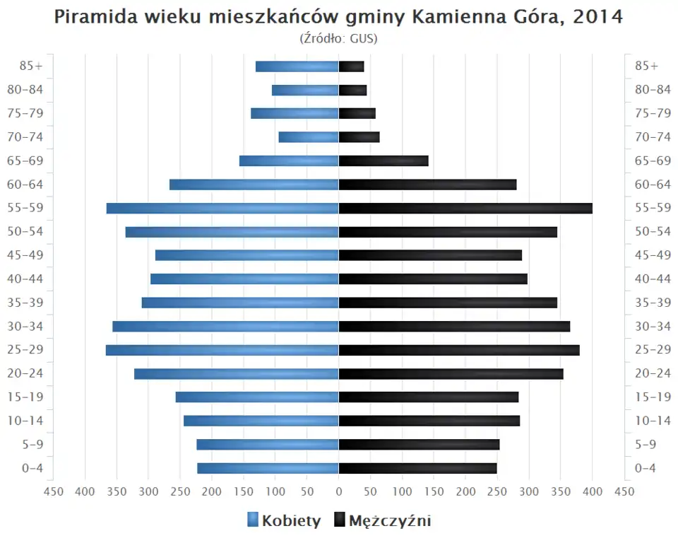 - Piramida wieku mieszkańców gminy Kamienna Góra w 2014 roku[5].
