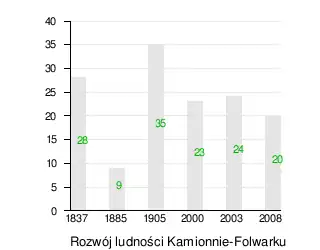 W 1846 r. osada została wspomniana jako Kamionna-Folwark, zaś 44 lata później pod niemiecką nazwą Motzberg. Na powojennych mapach miejsce to nie było wyróżniane odrębną nazwą, z wyjątkiem mapy z 1982 r., gdzie widoczne było pod spolszczoną nazwą Mocberg[4].