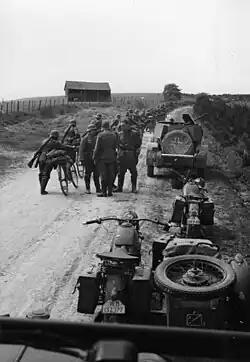 ![]() Belgijscy żołnierze prowadzeni pod strażą do niemieckiej niewoli po upadku fortów Eben-Emael, 11 maja 1940 | |||