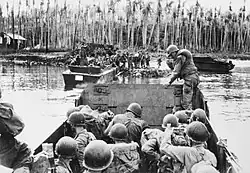 ![]() Żołnierze US Army po powrocie z patrolu nieopodal Arawe, grudzień 1943 | |||