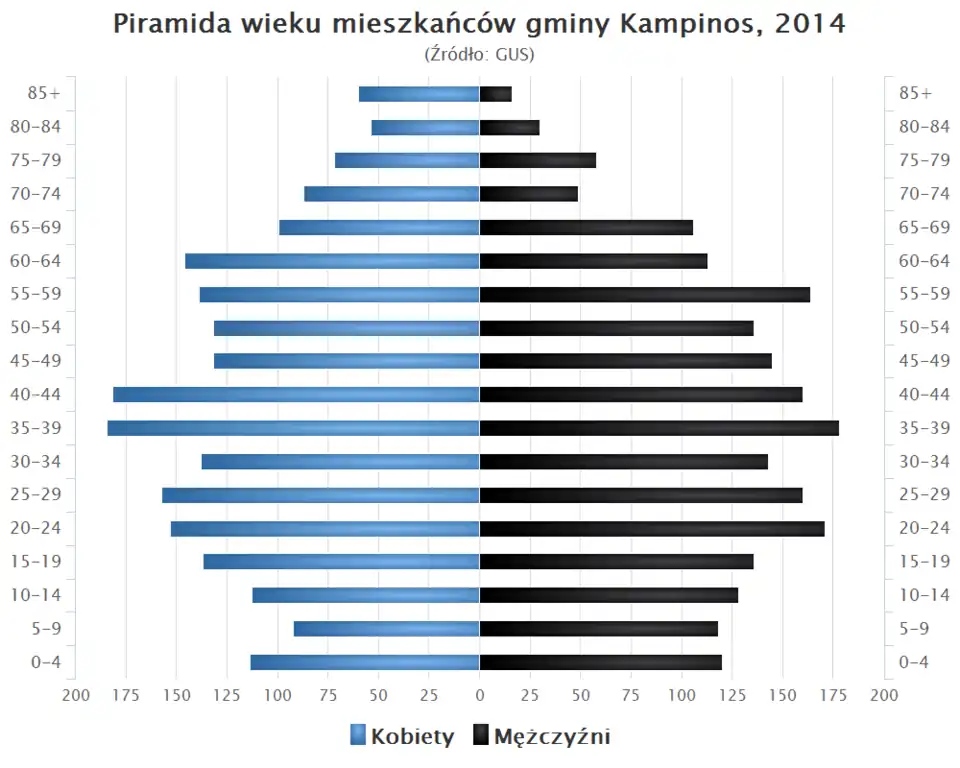 - Piramida wieku mieszkańców gminy Kampinos w 2014 roku[6].
