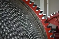 Wózki są ciągnięte przez liny zaczepione do wózków od górnej strony pochylni. W czasie pracy jedna z nich, ciągnąca wózek z dołu w górę pochylni, nawija się na bęben, druga zaś odwija, opuszczając drugi wózek w dół. Od dolnej strony pochylni wózki łączy trzecia lina, która przebiega przez koła zwrotne znajdujące się na dolnej stacji. Holuje ona górny wózek na początku przejazdu, gdy oba jadą w górę. Wózki mają po osiem kół z podwójnymi, bliźniaczymi obręczami jezdnymi. Cztery koła z dolnej strony pochylni opierają się o szyny wewnętrzną obręczą, a cztery z górnej zewnętrzną. Na dolnej i górnej stacji w części podwodnej szyny są rozdwojone, koła dolne trafiają na inne szyny niż górne i tym sposobem wózek przybiera pozycję poziomą, umożliwiającą statkom wpłynięcie nań lub spłynięcie.