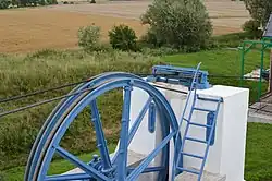 Najniżej położona pochylnia Całuny, zbudowana później niż pozostałe, zamiast koła wodnego ma napęd w postaci turbiny Francisa, natomiast system przeciągania wózków jest taki sam.[16]