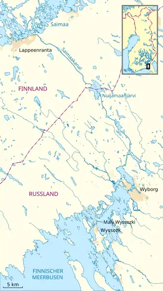 Kanał został oddany do użytku w 1856 r. na terytorium należącego do Imperium Rosyjskiego Wielkiego Księstwa Fińskiego między miastami Lappeenranta i Wyborg. Miał 28 śluz[2] i był dostępny dla jednostek o nośności do ok. 250 ton. W roku 1927 rozpoczęto przebudowę kanału tak, by przystosować go dla jednostek 500-tonowych, jednak prace przerwała wojna[1]. Po agresji sowieckiej zwanej wojną zimową w 1940 r. podpisano pokój w Moskwie, na mocy którego Finlandia scedowała na rzecz ZSRR Przesmyk Karelski wraz z Wyborgiem. Nowa granica podzieliła kanał na pół, co spowodowało jego zamknięcie dla żeglugi na 28 lat.