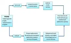 - ↑ §2 ust.1. pkt 14 Rozporządzenia Prezesa Rady Ministrów z dnia 18 stycznia 2011 r. w sprawie instrukcji kancelaryjnej, jednolitych rzeczowych wykazów akt oraz instrukcji w sprawie organizacji i zakresu działania archiwów zakładowych