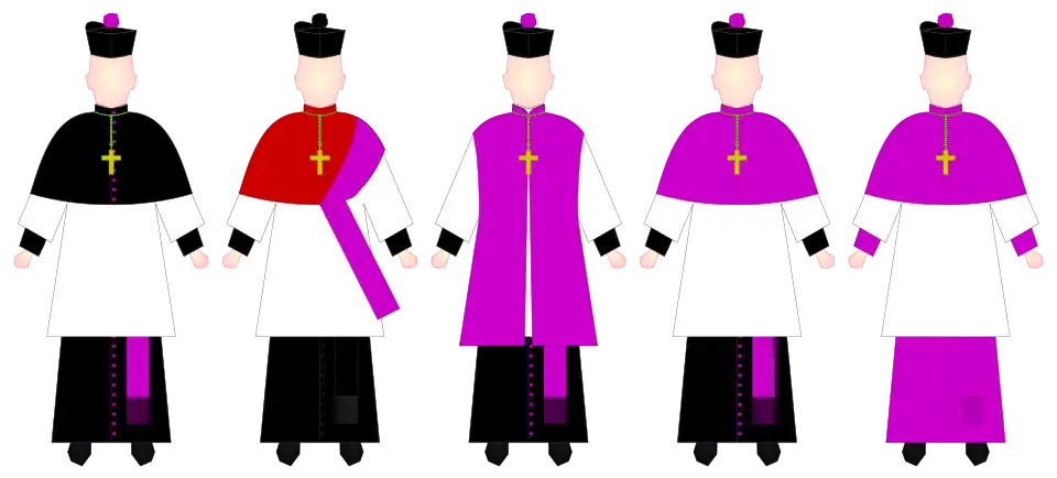 - E.C. – Expositorium Canonicale – noszący purpurowe podbicie komży oraz pompon purpurowy w birecie;