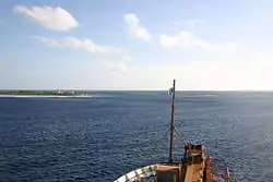Kanał łączący lagunę z oceanem ma głębokość 7,6 m, aczkolwiek raport z roku 1988 mówił o co najmniej 9 m; po opuszczeniu kanału głębokość spada do 4,5 m. Najlepsze kotwicowisko znajduje się na zewnątrz atolu, na półce szelfowej, gdzie głębokość nie przekracza 25 m, a piaszczyste koralowe dno dobrze trzyma kotwice. W opinii mieszkańców i kapitanów statków odwiedzających wyspę, dla jednostek zbyt dużych, by mogły wejść do laguny, dobrego kotwicowiska w pobliżu wyspy nie ma[8].