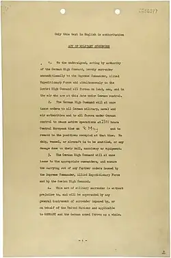 - Militärische Kapitulationsurkunde vom 8. Mai 1945