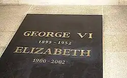 - 9 kwietnia 2002 – księżniczka Małgorzata Windsor (ur. 1930, szczątki przeniesiono z krypty królewskiej) i królowa Elżbieta Bowes-Lyon (ur. 1900),