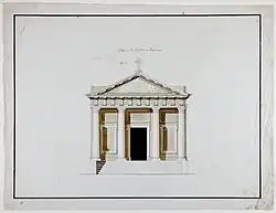 Murowaną świątynię pokrytą dwuspadowym dachem wzniesiono w stylu klasycyzmu na planie prostokąta. Dominantą fasady głównej był czterokolumnowy portyk dorycki zakończony tympanonem. Elewacje boczne dekorowano pilastrami oraz gzymsem. Obecnie kaplica znajduje się w ruinie.