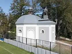 Do kaplicy prowadziła dawniej aleja z lip drobnolistnych, której pozostałości w formie kilku pomnikowych egzemplarzy, pozostały do dziś. W okresie międzywojennym budynek został obsadzony drzewami mającymi tworzyć niewielki park, z którego częściowo zachowały się kasztanowce.