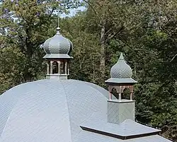 Do korpusu budowli przylegały dwa prostokątne aneksy. Aneks północny (obecnie całkowicie zburzony) był niższy, jednokondygnacyjny, nakryty dwuspadowym dachem i służył najprawdopodobniej za główne wejście. Wyższy, dwukondygnacyjny aneks, o wymiarach obrysu 520×550 cm, znajduje się po południowej stronie. W jego dolnej części znajdowało się dostępne z zewnątrz pomieszczenie o sklepieniu krzyżowym, prawdopodobnie zakrystia. Górna, główna kondygnacja aneksu osłonięta była stropem związanym z wiązarami dachu. Współcześnie trudno ocenić funkcję tego pomieszczenia. Być może było to prezbiterium, jednak tak wysokie położenie może sugerować, że była to jednak empora przeznaczona dla właścicieli dóbr. Aneks ten nakryty był łamanym dachem z sygnaturką zwieńczoną cebulastym hełmem. W wieżyczce zawieszony był dzwon z dwiema inskrypcjami, które odnosiły się do ludwisarza oraz fundatorów: