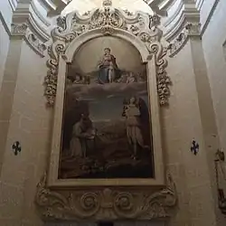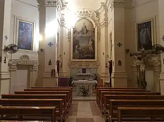Nad czterema drzwiami obrazy przedstawiające św. Ignacego, św. Franciszka Ksawerego, św. Marcina i św. Publiusza. Z innych dzieł sztuki znajdujących się w kaplicy należy wymienić krucyfiks, dzieło lokalnego artysty Wistina Camilleri, dwie statuy św. Dominiki oraz owalne malowidło, przedstawiające św. Kalcedoniusza. Pochodzi ono z oryginalnej niewielkiej kaplicy San Kalċidonju, dziś za ołtarzem głównym[2].