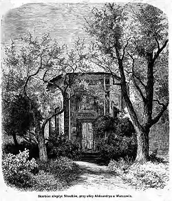 ![]() Widok od strony Krakowskiego Przedmieścia na Kaplicę Moskiewską (łac. Sacellum Moscovitarum) sąsiadującą z Villa Regia – Erik Dahlbergh; fragment panoramy Warszawy z roku 1656. Z rysunku wynika, że budynek ten nie mógł jednak znajdować się w pobliżu Pałacu Staszica i należałoby go lokalizować raczej w miejscu obecnego Wydziału Polonistyki UW. | |