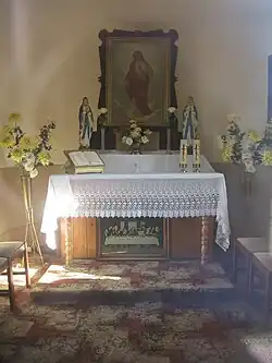 Wewnątrz kapliczki znajdowała się drewniana klasycystyczna wieczna lampka[5], wysoka na 49 cm, ze zdobieniami w postaci umieszczonych na obwodzie czterech aniołów, trzymających lichtarze oraz naczyniem przypominającym wazon, udekorowanym rzeźbionymi płomieniami[6].