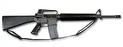 - M16 (AR-15, XM16) – pierwsza wersja seryjna produkowana dla US Air Force. Karabin strzelający amunicją M193, nie posiadający dosyłacza zamka.