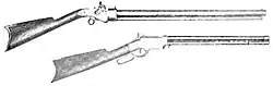Pierwsze karabiny tego typu, które trafiły do produkcji seryjnej, opracowano w połowie XIX wieku w amerykańskim przedsiębiorstwie Volcanic Repeating Arms, jednak ich produkcja była mocno ograniczona a konstrukcja daleka od doskonałości, co ostatecznie doprowadziło do upadku firmy w 1856 r. Niebawem wszystkie akcje upadłej firmy wykupił jej udziałowiec Oliver Winchester, przeorganizowując ją w nowe przedsiębiorstwo New Haven Arms Company, w którym zatrudnił byłego pracownika firmy Volcanic Tylera Henry’ego. Henry w 1860 r. dopracował konstrukcję karabinu rozwijanego w poprzedniej firmie, która w 1862 r. trafiła do produkcji seryjnej jako karabin Henry’ego i odniosła komercyjny sukces[3]. W 1866 r. Winchester kolejny raz przeorganizował firmę jako Winchester Repeating Arms Company, pod szyldem której zaczął produkować karabiny powtarzalne (począwszy od modelu Winchester M1866).