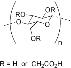Karboksymetyloceluloza (CMC, łac. Carboxymethylcellulosum, syn. Carmellosum) – polimer, półsyntetyczna pochodna celulozy otrzymana przez przyłączenie do jednej z reszt hydroksylowych glukopiranozy grupy karboksymetylowej (-CH2-COOH). Często używana w postaci soli sodowej. W przemyśle spożywczym jest oznaczona symbolem E466 i należy do grupy emulgatorów i środków zagęszczających.