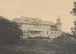 Po wschodniej stronie głównej drogi wznosi się okazały pałac klasycystyczny z lat 1805-11 r., który zbudowany został dla Mikołaja Mielżyńskiego, a w roku 1908 przebudowany i powiększony według projektu Rogera Sławskiego. Pałac jest piętrowy, wybudowany na planie prostokąta, kryty stopniowanym dachem dwuspadowym i dachem czterospadowym, z wieżą na prawym (południowo-zachodnim) narożniku ściany frontowej. Od frontu pseudoryzalit zwieńczony tympanonem zawierającym kartusz z herbem Nałęcz Józefa Kęszyckiego[5]. Nad wejściem balkonem na wysokości pierwszego piętra z kamienną balustradą[6]. Obok park krajobrazowy o pow. 7,12 ha z 3 stawkami oraz dębami o obwodzie do 480 cm, a także kasztanowcami, jesionami i klonem polnym.