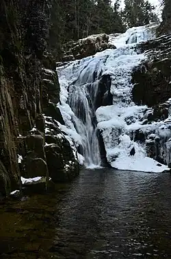- ↑ Karkonosze - jakie jest położenie, jakie są główne szczyty Karkonoszy, jakie są najciekawsze miasta w Karkonoszach, jakie są schroniska w Karkonoszach, najbardziej znane wodospady, Karkonoskie jeziora polodowcowe [online], karpacz.com.pl [dostęp 2021-02-03].