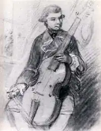 Niemiecki muzyk i kompozytor Karl Friedrich Abel (1723–1787) był wirtuozem gry na violi da gamba. Przybył do Londynu w 1759 roku. Zasłynął publicznymi koncertami w Hanover Square Rooms, które organizował z Johannem Christianem Bachem. Przyjaźnił się także z Thomasem Gainsborough, który dwukrotnie go sportretował: ok. 1765 roku (obraz w Narodowej Galerii Portretu) i ok. 1777 roku (obraz w Huntington Library)[2]. Również Gainsborough nauczył się gry na violi da gamba, instrumencie, który starannie przedstawił na portrecie[1].
