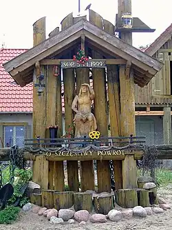 - Kapliczka Jezusa Frasobliwego z napisem „O szczęśliwy powrót” – przy przystani rybackiej