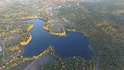 Jezioro Karlikowskie z lotu ptaka. Zdjęcie wykonane jesienią 2015 r.
