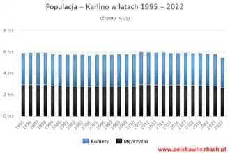 - 1 2 3 Karlino w liczbach. Karlino - Dane demograficzne [online], Polska w liczbach [dostęp 2015-12-29], liczba ludności na podstawie danych GUS.