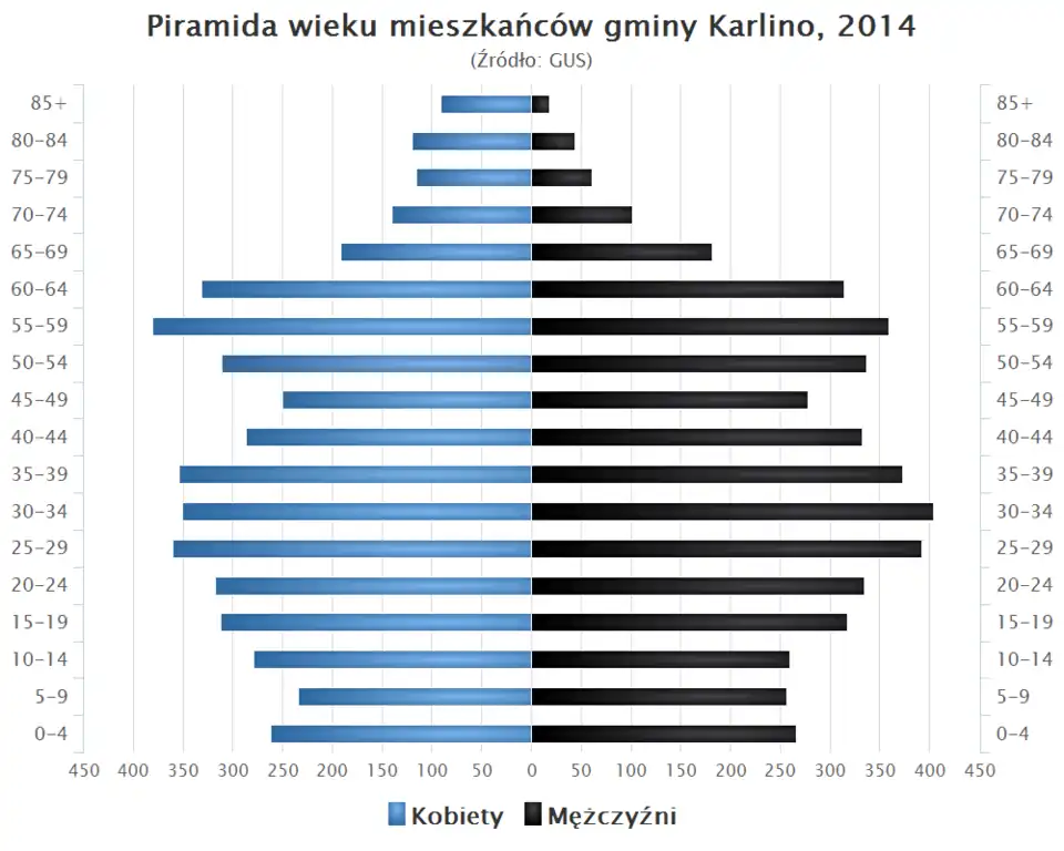 - Piramida wieku mieszkańców gminy Karlino w 2014 roku[4].