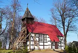 We wsi kościół Najświętszego Serca Pana Jezusa, filialny, z 1803, ryglowy, z dzwonnicą przykrytą hełmem ostrosłupowym[5] oraz liczne szachulcowe domy mieszkalne, z XVIII-XX w.[4] Wzdłuż torów aboretum, założone w połowie XIX w., w którym prowadzono doświadczenia nad aklimatyzacją daglezji zielonej (Pseudotsuga menziesii) i jodły pospolitej (Abies alba).