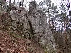 Zbudowana z twardego wapienia rogowcowego skała znajduje się w lesie po prawej stronie drogi Karniowice – Kobylany, powyżej pętli autobusowej. Jest najwyższą w grupie rozrzuconych po lesie Karniowskich Skał[2]. Ma wysokość 6–10 m. Uprawiana jest na niej wspinaczka skalna. Wspinacze poprowadzili 15 dróg wspinaczkowych o trudności od III do VI.3 w skali polskiej oraz 3 projekty. Niemal wszystkie mają zamontowane stałe punkty asekuracyjne; ringi (r) i stanowiska zjazdowe (st). Drogi o wystawie zachodniej i południowej[1].