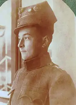 Jeszcze przed maturą, mając 17 lat, zaciągnął się w roku 1915 do Legionów Polskich[4], ukrywając przed komisją rekrutacyjną zbyt młody wiek. Jako żołnierz 4 pułku piechoty III Brygady Legionów przeszedł chrzest bojowy pod Jastkowem[5]. Z powodu choroby i śmierci ojca musiał wystąpić z wojska, wkrótce jednak znalazł się w armii austriackiej, ukończył w 1916 r. szkołę oficerską i trafił na front. Był ranny podczas walk w Karpatach[6]. Za swoją służbę w czasie I wojny światowej otrzymał austriackie Medale za Waleczność (srebrny i brązowy) oraz Krzyż Wojskowy Karola[7].