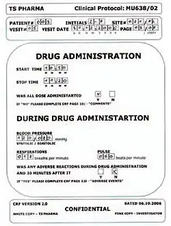 Według definicji zawartej w rozporządzeniu[2] jest to dokument, w wersji papierowej lub elektronicznej, służący do zapisu wymaganych przez protokół badania klinicznego informacji dotyczących uczestnika badania w celu ich raportowania sponsorowi.