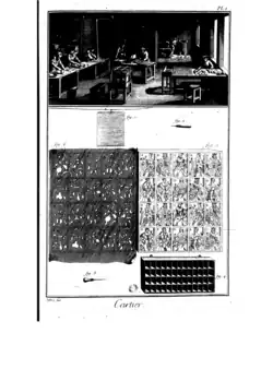 We Francji nazywano kartowników – zależnie od etapu pracy – dominotiers (w związku z fabrykacją papieru pstrego, marmurkowego), feuilletiers (drukarze kart) i cartiers (wytwórcy). Kartownicy współpracowali z fabrykantami papieru[9] i formkrawaczami[10]. Pierwszy statut cechu kartowników pochodził z Rouen z 1540 roku. Cechy kartowników w XVI wieku rozwijały się razem z modą na grę w karty. W obronie praw kartowników w Rouen w XVII wieku wybuchły masowe zamieszki[11].