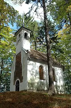 - kaplica św. Krzyża z XVII w. na Spiczastej Górze 253 m n.p.m.[40]