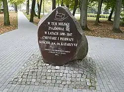 W 1825 roku, po kasacie klasztoru kartuzów decyzją administracji kościelnej dokonano rozbiórki dawnego kościoła parafialnego św. Katarzyny, znajdującego się na nieistniejącym cmentarzu (ob. Park Solidarności) między pl. św. Brunona a kościołem klasztornym (istnienie drugiej świątyni było dotąd niezbędne wobec surowości reguły kartuzów, uniemożliwiającej kobietom korzystanie z kościoła klasztornego). Kościół ten w okresie reformacji został przyłączony do parafii w Goręczynie jako filialny.