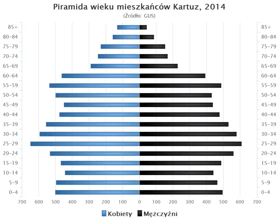 - Piramida wieku mieszkańców Kartuz w 2014 roku[39].
