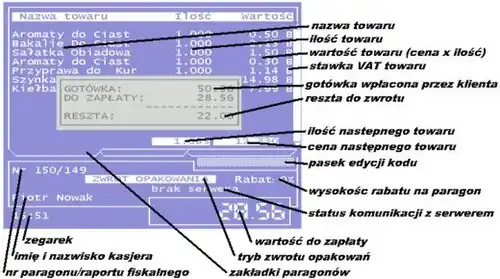 - możliwość komunikacji z serwerem zarządzającym w trybie on-line (w tle, bez przerywania pracy na kasie);