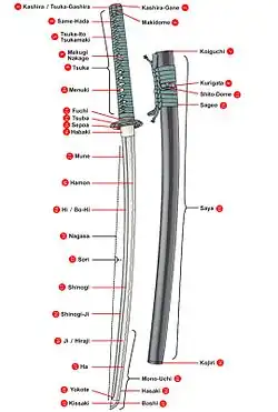 - ↑ Kanzan Sato: The Japanese Sword: A Comprehensive Guide. Kodansha International, 1983, s. 17. ISBN 978-0-87011-562-2.