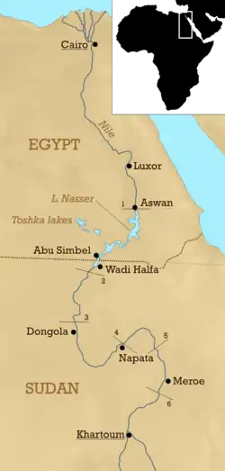 Najbardziej znane są katarakty Nilu, które już w czasach starożytnego Egiptu stanowiły wyraźne punkty wyznaczające granice władzy faraonów. Numerowane kolejno od północy na południe od I do VI, katarakty wyznaczały zasięg potęgi państwa egipskiego. Obecnie w granicach Egiptu znajduje się tylko pierwsza katarakta, nad którą położone jest miasto Asuan. Tuż powyżej tej katarakty znajduje się Wysoka Tama Asuańska stanowiąca największą zaporę wodną na Nilu. Pozostałe pięć katarakt znajduje się obecnie na terytorium Sudanu.