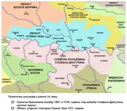 - ↑ Zdaniem J. Fine'a Dragutin otrzymał również od króla węgierskiego część północnej Bośni z Usorą i Soli. J. Fine: The Late Medieval Balkans. s. 218.