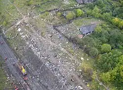 Samolot spadł w odległości 11,5 kilometra na północny wschód od lotniska – na zboczach nasypu linii kolejowej magistrali Sibnieft, uszkadzając półkilometrowy odcinek sieci trakcyjnej – w odległości około trzystu metrów od najbliższych zabudowań. W chwili zderzenia z ziemią, odrzutowiec uległ całkowitej dezintegracji, a rozsiane na dużej przestrzeni szczątki i szyny linii momentalnie stanęły w płomieniach. Pożar szczątków ugaszono w przeciągu kilku następnych godzin.