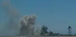 - Agencja Reutera: Zbliżenie pokazujące miejsce uderzenia samolotu o obrzeżenie wystające w Zatokę, ze śladem fragmentów emanującym od tego miejsca. 6 lipca 2013. [dostęp 2013-07-07].