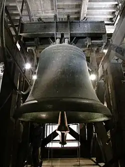 Wewnątrz środkowej części wieży wisi 14 dzwonów, w tym siedem zabytkowych, które stanowią zachowaną część dawnego zespołu 13 dzwonów, które odlał w 1505 r. działający w Niderlandach oraz w niemieckiej Saksonii i Turyngii Gerhard van Wou. Największy z nich nazywa się Salvator. Siedem współczesnych dzwonów odlanych w ludwisarni Eijsbouts w Asten[3]. Wszystkie dzwony biją wyłącznie podczas głównych świąt kościelnych i państwowych i najważniejszych dla miasta okoliczności: