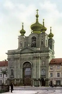 W 1834 rosyjski gubernator Iwan Paskiewicz przekazał kościół Rosyjskiej Cerkwi Prawosławnej. Pijarom wypłacono wysokie odszkodowanie w wysokości ponad 53,3 tys. rubli[3] oraz przekazano opuszczony kościół jezuitów przy ul. Świętojańskiej[4]. W latach 1835–1837 miała miejsce przebudowa i adaptacja kościoła do liturgii prawosławnej według projektu Antonia Corazziego i Andrzeja Gołońskiego[5]. Między innymi usunięto z wnętrza barokowy wystrój, a na wieżach, zakończonych kokosznikami, zawieszono dzwony odlane z armat zdobytych w powstaniu listopadowym. Pijarska świątynia została zaadaptowana na sobór Trójcy Świętej, katedrę eparchii warszawskiej i nowogieorgijewskiej[6].