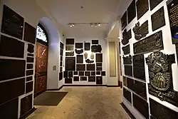 W kaplicy znajduje się 15 tys. tabliczek, na których widnieją nazwiska ofiar Katynia, Charkowa i Miednoje. Umieszczono tam także tabliczki bezimienne (7 tys.).