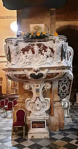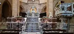 – ołtarz główny (połowa XVII w.) – przedstawia patronkę katedry, Maryję Wniebowziętą (wł. Assunta), adorowaną przez dwa anioły. Całą grupę rzeźb prezentującą styl późnobarokowy wykonał pochodzący z Genui Giuseppe Massetti.