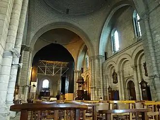 Nawa główna przykryta jest trzema kopułami, szeroki transept od północy i południa ma wieże, a chór zamknięty jest absydą z czterema kaplicami i nakryty półkopułą. Na skrzyżowaniu nawy z transeptem znajduje się duża kopuła na pendentywach, która zastąpiła oryginalną, zniszczoną podczas protestanckiego oblężenia w 1568 roku.