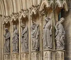 Wejścia do katedry znajduje się od strony zachodniej oraz północnej, umieszczone w gotyckiej kruchcie która jest dwukondygnacyjnym założeniem zbudowanym na planie trójkąta. W górnej części znajduje się nakryta ostrosłupowym hełmem wieża, poniżej dwa ostrołukowe portale z bogatą dekoracją architektoniczną i zespołem pełnoplastycznych rzeźb tworzących programy ikonograficzne. Na ościeżach portalu wschodniego (od strony placu katedralnego) znajdują się rzeźby Dwunastu Apostołów, na polu tympanonu Grupa Ukrzyżowania, a trumeau zdobi Madonna z Dzieciątkiem. Portal zachodni zdobią na ościeżach rzeźby Panien Mądrych i Głupich, flankowanych wyobrażeniami Eklezji i Synagogi. personifikujących Stary i Nowy Testament. W polu tympanonu przedstawienia Vir Dolorum z Maryją i Św. Janem Ewangelistą, a w trumeau Archanioł Michał zwyciężający bestię. Oba portale wieńczą ażurowe wimpergi z dekoracją maswerkową.